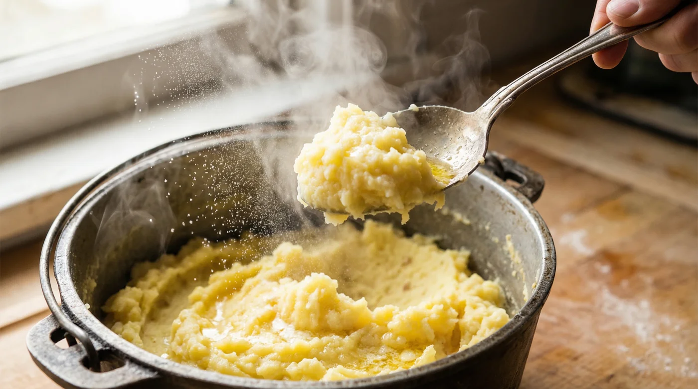 Dein Instinkt sagt dir nun, was dir alte Familienrezepte immer beigebracht haben: Mehr Fett. Ein weiteres halbes Päckchen Butter verschwindet im Topf, gefolgt von einem großzügigen Schuss Sahne. Doch während der Geschmack tatsächlich runder wird, bleibt die Konsistenz drückend. Der Brei wird reichhaltiger, aber er atmet nicht. Er liegt später wie ein Stein im Magen. Das Geheimnis echter Leichtigkeit liegt jedoch nicht in der Milchkanne – es wartet unerwartet in deinem Backschrank.